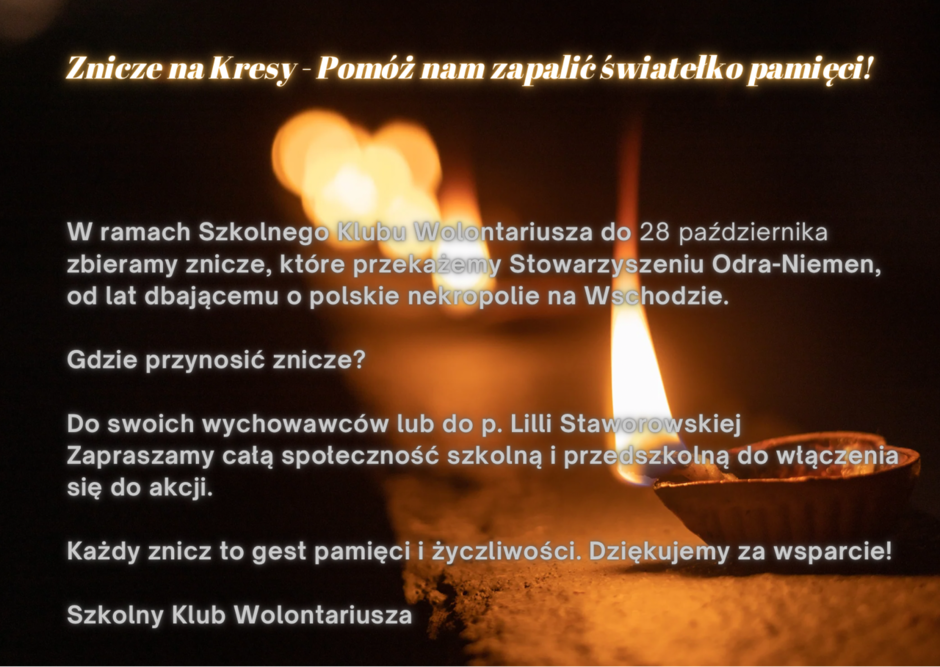🕯️ Zbiórka na znicze – dzięki zebranym środkom przed 1 listopada zapłoną znicze na grobach zmarłych kolegów i koleżanek, nauczycieli oraz pracowników administracji. To gest pamięci, wdzięczności i troski o tych, którzy byli częścią naszej wspólnoty.