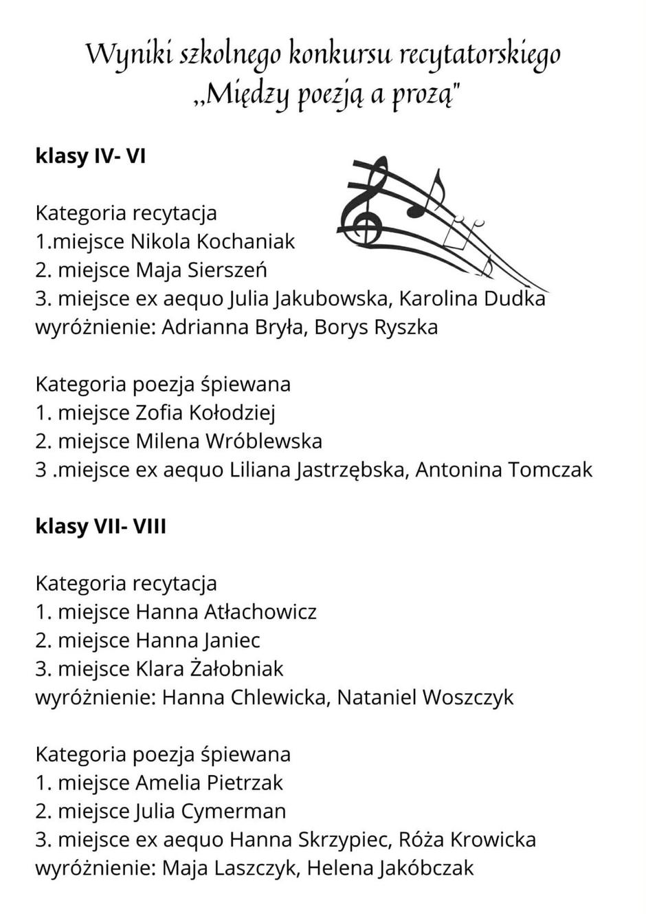 • Nina Kowalska, kl. VIII a – I miejsce