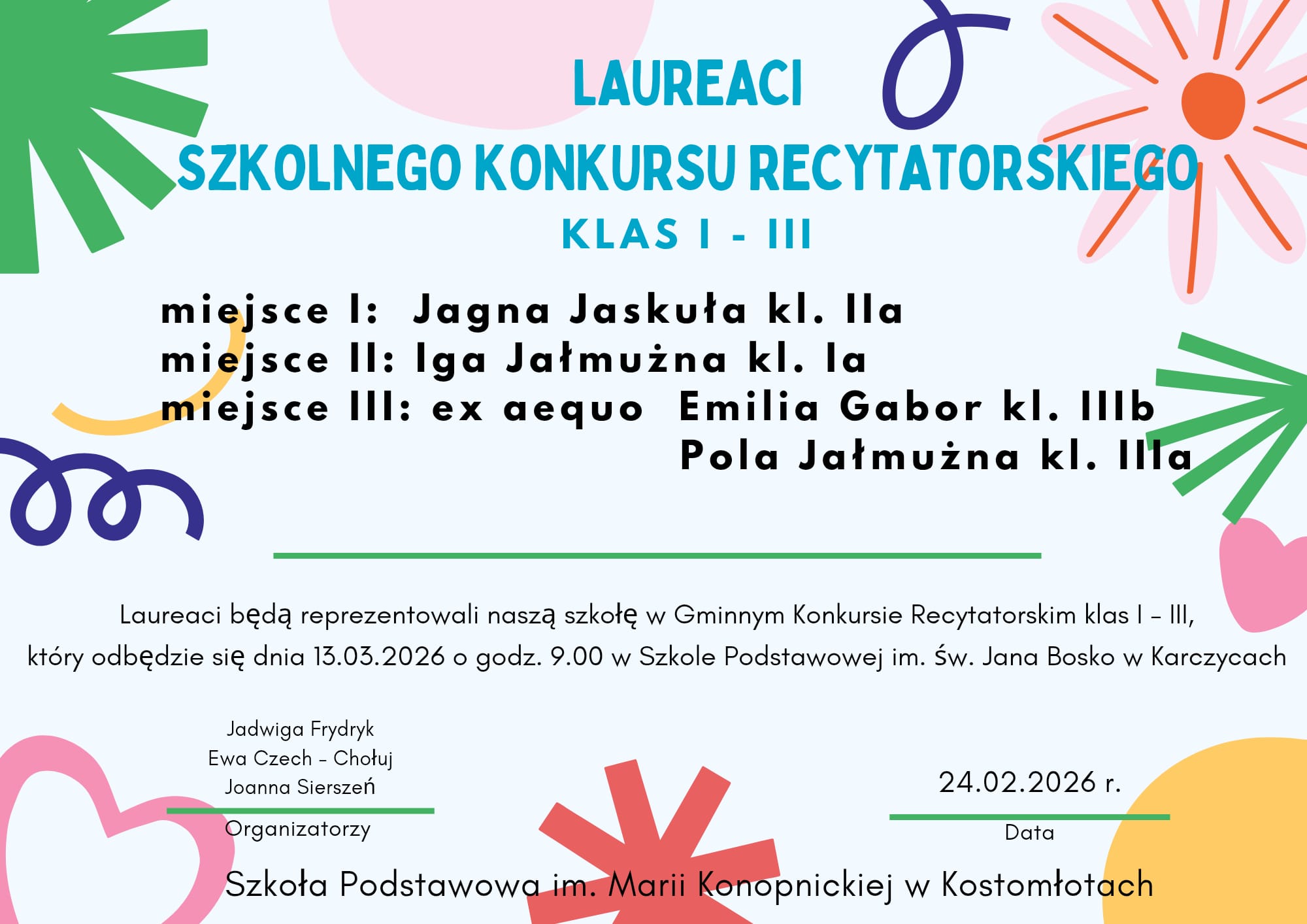 • Iga Pomykała, kl. I b – wyróżnienie
